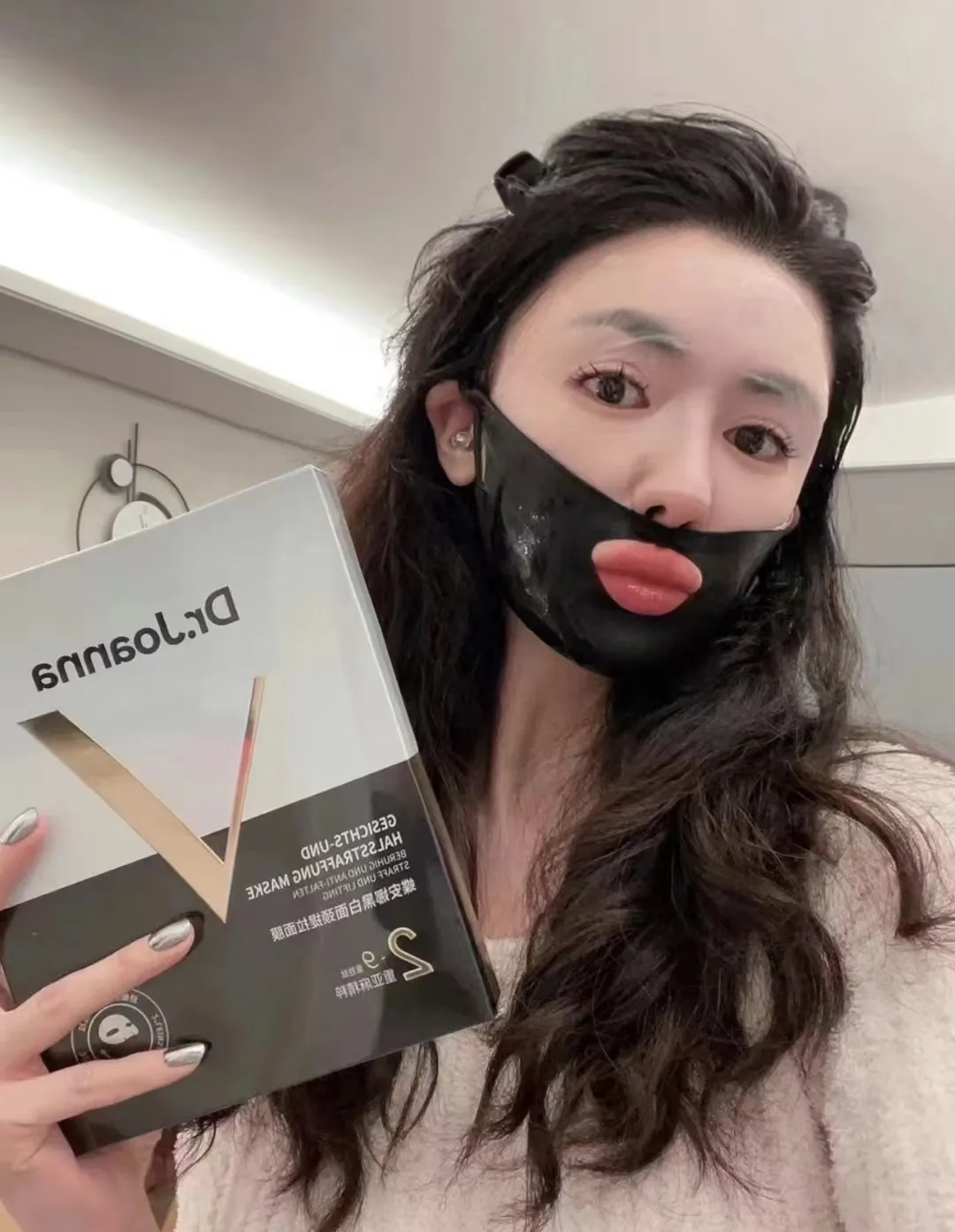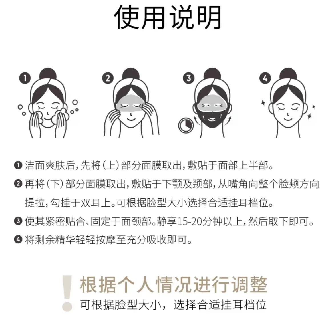 下庭位置黑膜:专利提拉膜布,达到物理提拉,设计覆盖了下颚线、双下巴、发腮、法令纹、苹果肌提升。