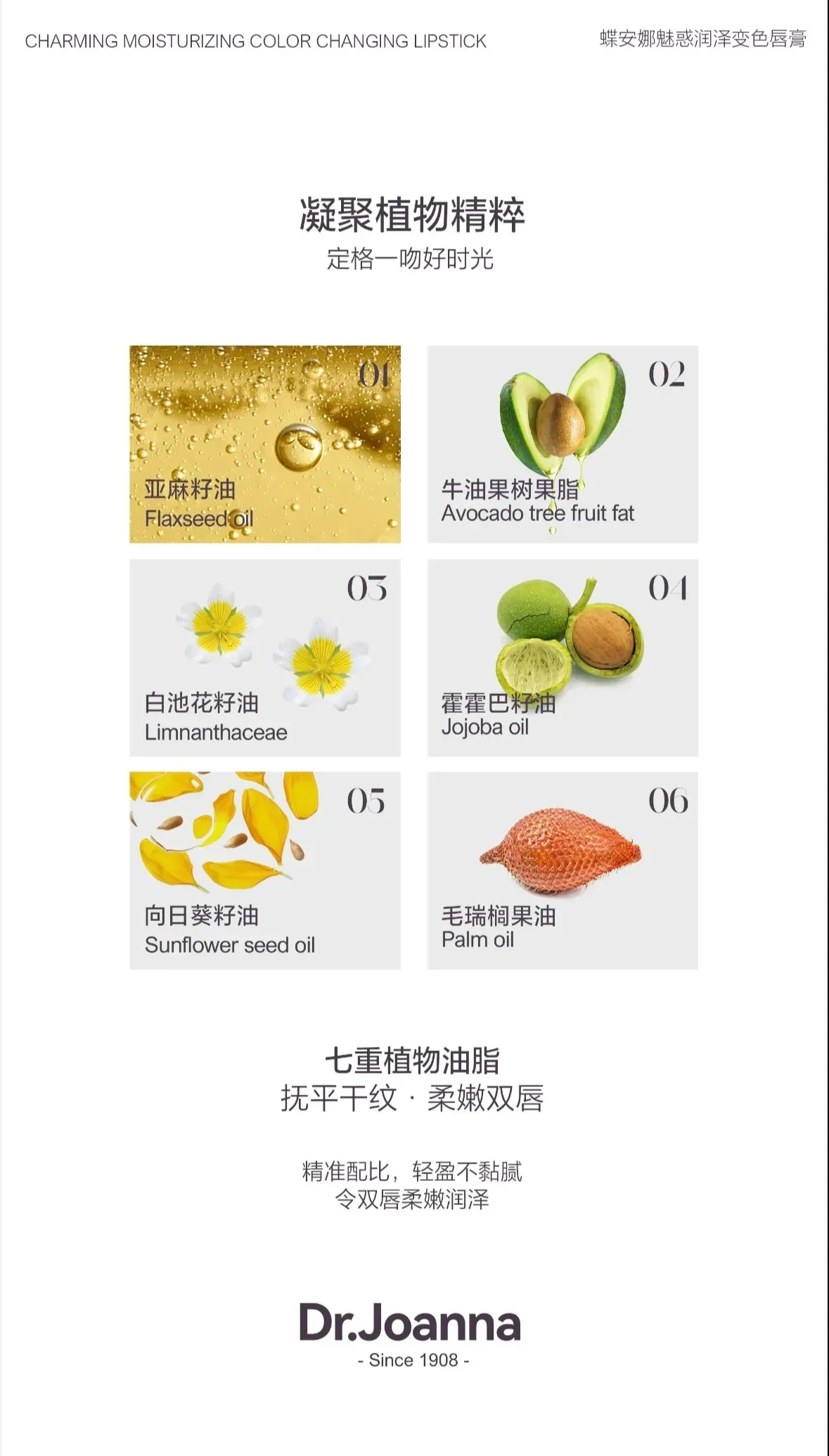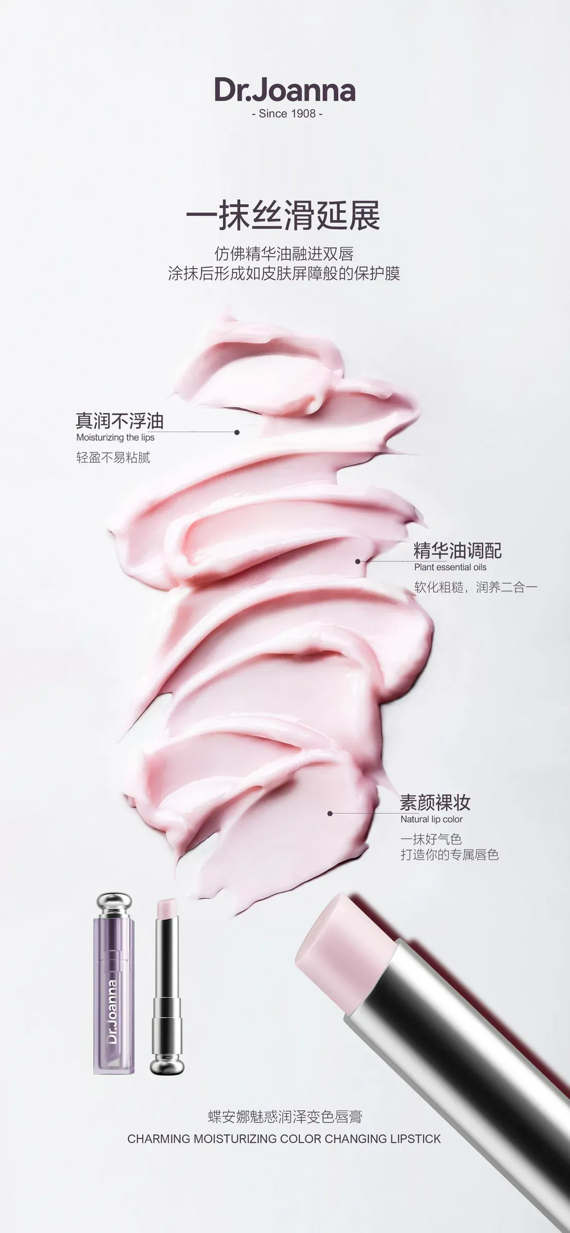 油脂包裹有效成分 触肤即融 一抹丝滑 根据唇部温度智能变色